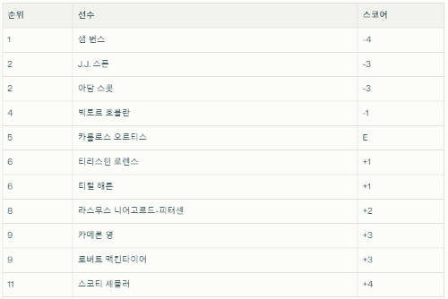 - 스코티 셰플러: 올 시즌 12개 대회 중 처음으로 사흘 연속 언더파를 기록하지 못했고, 3라운드까지 15개의 보기를 쏟아내며 고전. 하지만 이 어려운 코스에서 공동 11위로 톱 10 진입을 노립니다.