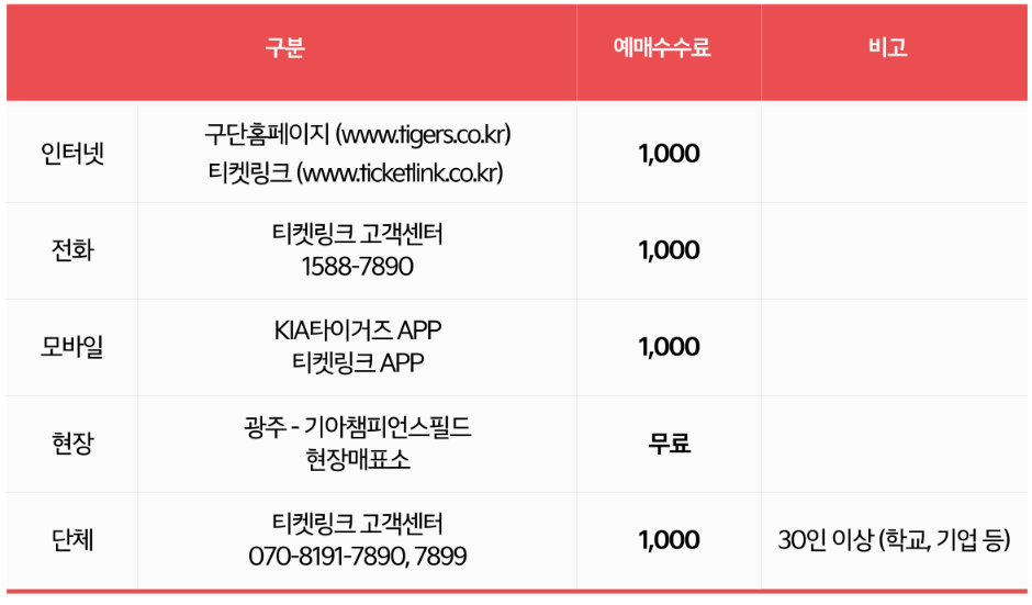 - 현장 예매는 경기 시작 2시간 전부터 가능하며, 잔여 좌석이 있는 경우에만 구매할 수 있습니다.
