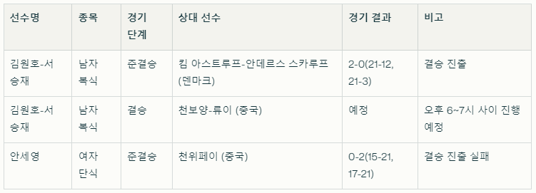 - 신아일보: 김원호-서승재, 27분 만에 압승 거두고 세계선수권 결승행