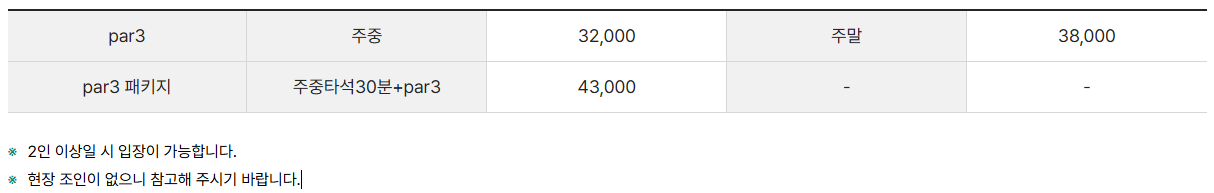 <출처> 남서울 CC 홈페이지_파3 연습장 이용료