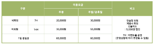 <출처> 리베라트레이닝센터 홈페이지_이용료