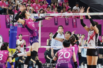 2세트: 정관장이 세트포인트에 도달했지만 김연경과 피치의 활약으로 흥국생명이 대역전극을 펼쳤습니다.