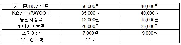 • K쇼핑존/PAYCO존: 중앙 테이블석으로, 넓고 쾌적한 환경에서 경기를 관람할 수 있습니다. 가격은 주중 3만 5천 원, 주말 4만 원입니다.