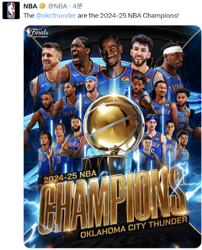 - 게임 7: OKC는 3 쿼터 역전과 4 쿼터 SGA의 쐐기 자유투로 103-91 승리를 확정 지으며 우승을 차지했습니다.