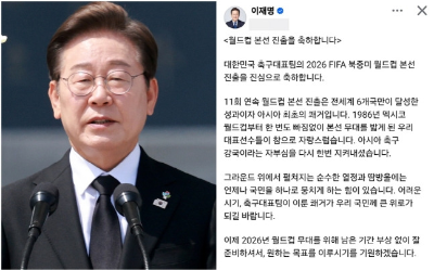 이재명 신임 대통령은 현충일인 6일 오후, 자신의 SNS를 통해 축구대표팀의 위업을 진심으로 축하하는 메시지를 전했습니다. 그는 “11회 연속 월드컵 본선 진출은 전 세계 6개국만이 달성한 성과이자 아시아 최초의 쾌거”라며, “1986년 멕시코 월드컵부터 한 번도 빠짐없이 본선 무대를 밟게 된 우리 대표선수들이 참으로 자랑스럽다”라고 강조했습니다.