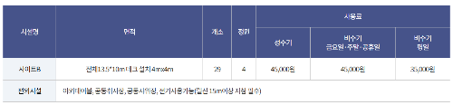 - 카라반 사이트: 전기 사용 포함 시 45,000원