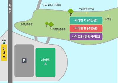 - C구역: 캠핑장에서 다소 떨어져 있지만, 자연 속에서 프라이빗한 캠핑을 원하는 캠퍼들에게 추천됩니다.