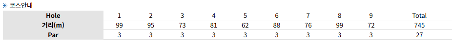 - 코스 구성: 파3 9홀 (99m 이내)