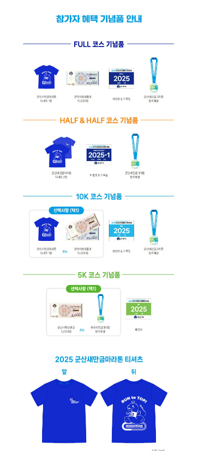 - 대회장소: 전라북도 군산시 월명종합경기장에서 출발하며, 새만금 방조제 일대를 달리는 코스로 진행됩니다.