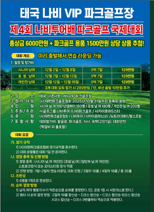 - 대회 장소: 나비VIP 파크골프장 (태국 나콘사완)