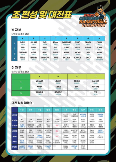 - 결승 및 시상식: 7월 6일(일), 박종민 아나운서 사회로 진행, 농구인들이 직접 시상