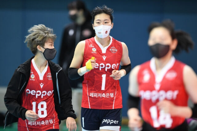 이후 2021년 페퍼저축은행으로 이적했지만, 왼쪽 무릎 부상으로 인해 힘든 시간을 보냈습니다. 2022-2023 시즌에는 무릎 수술로 단 한 경기도 출전하지 못했고, 2023년 6월 자유신분선수로 팀을 떠났습니다. V-리그 통산 기록은 119경기, 430점, 공격 성공률 29.03%, 리시브 효율 26.56%입니다.