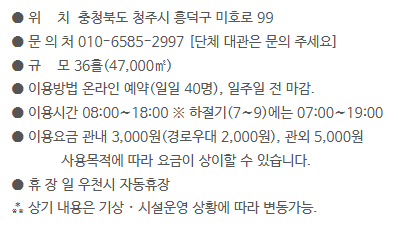 청주시민 회원 등록 시 무료 강습 혜택(주 2시간, 오후 2시 시작)도 있으니 참고하세요.