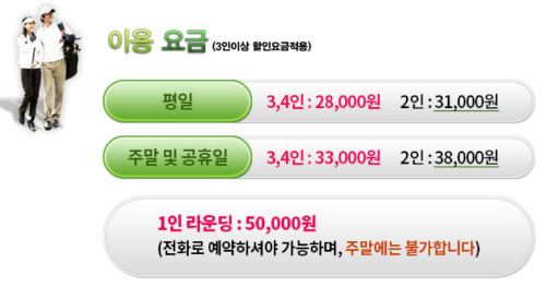 - 파인파 골프클럽의 이용료는 주중 1인 기준 4만 원이며, 2인이 방문할 경우 3만 원으로 할인됩니다. 주말에는 1인 플레이가 불가능하고, 3인 기준 4만 5천 원입니다.