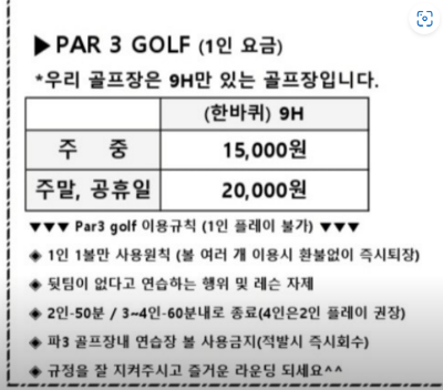 - 가성비 좋은 이용료: 저렴한 가격으로 파3 골프장을 이용할 수 있어, 숏게임 연습이나 라운드 전후로 몸을 풀기 위한 장소로 적합하다.