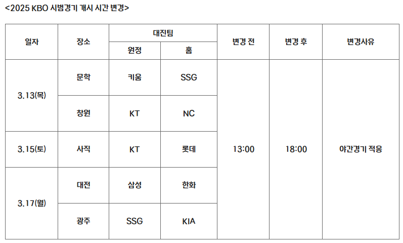 - 3월 4일: 한화 이글스 vs 소프트뱅크 호크스