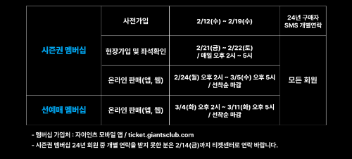 - 2024년 시즌 티켓 구매자 유선 신청: 2월 12일 ~ 2월 19일
