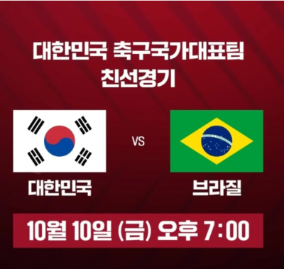 2025년 10월 10일, 한국 축구의 역사에 새로운 페이지가 쓰일 것입니다. 세계 최강 브라질과의 명승부, 그리고 KFA가 야심 차게 준비한 '글로벌 스탠다드 중계'를 통해 한 차원 높은 축구의 감동을 경험하시길 바랍니다! 대한민국 축구 국가대표팀에 뜨거운 응원 부탁드립니다!