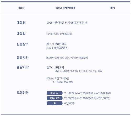 가장 정확하고 신뢰할 수 있는 정보는 2025 서울 마라톤 조직위원회에서 제공하는 공식 채널을 통해 얻을 수 있습니다.