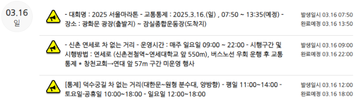 이번 주말, 서울 도심 이동 계획이 있으시다면 반드시 2025 서울 마라톤 교통 통제 정보를 확인하시고, 안전하고 즐거운 이동되시길 바랍니다.