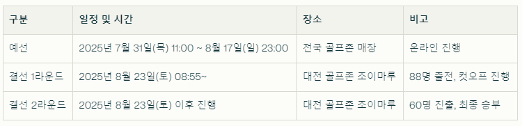 - 결선 - 2025년 8월 23일(토) 08:55~ (1, 2라운드)