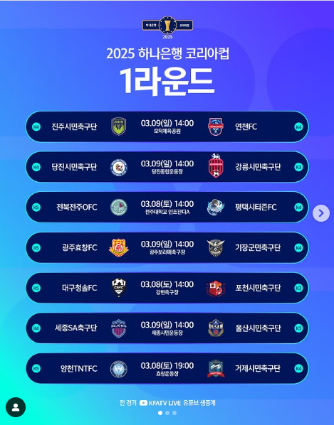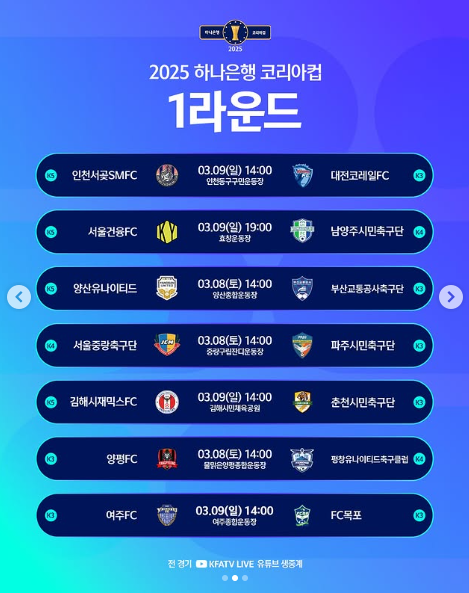 코리아컵은 K리그를 넘어 한국 축구 전체를 뜨겁게 달구는 축제입니다. 2025 하나은행 코리아컵에 많은 관심과 응원 부탁드립니다!