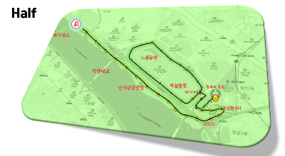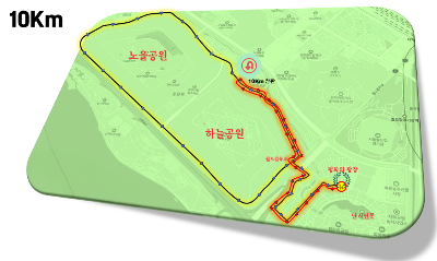- 상암 월드컵공원 평화광장 출발 코스. 5km, 10km, 하프 코스 운영.
