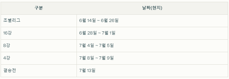 - 조별리그 일정(현지 기준)
