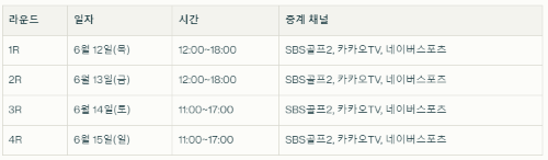| 2025 KLPGA 한국여자오픈골프선수권대회: 중계 경기 일정 시간(노승희, 21년 만에 2연패 도전) (0) | 2025.06.12 |