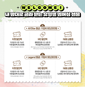 - 주니어 멤버십 혜택 강화: 푸짐한 선물, 정규시즌 홈경기 1만 원 할인 또는 내야 필드석 이하 무료입장 (만 3세 이상 만 14세 이하 어린이 대상)