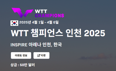 2025 WTT 챔피언스 인천 개요 및 주요 관전 포인트 2025년 4월 1일부터 6일까지 인천의 INSPIRE 아레나에서 WTT 챔피언스 인천이 개최됩니다. 이 대회는 세계 최고의 탁구 선수들이 모여 경쟁하는 명실상부한 세계적인 무대입니다. 이번 대회는 한국의 슈퍼스타 신유빈이 홈 경기장에서 다시 한번 도전하는 중요한 시점이기도 합니다.